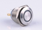 Pulsante antivandalo 16mm, 2A 36VDC, 1 contatto NA momentaneo, segnalazione Ring Led Bianco 12V, corpo acciaio inox terminali a saldare.