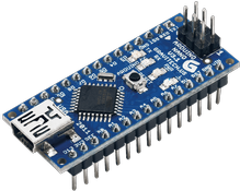L' Arduino Nano è un piccola scheda basata su microcontrollore ATmega328. E' dotata di 14 terminaki di Input/Output, 6 dei quali possono essere impiegati come uscite PWM, oltre 8 ingressi analogici. Funziona con un quarzo a 16MHz, e un connettore USM Mini-B permette la programmazione a mezzo bootloader. La tensione di alimentazione esterna, può essere compresa tra 7 e 12Vcc.
